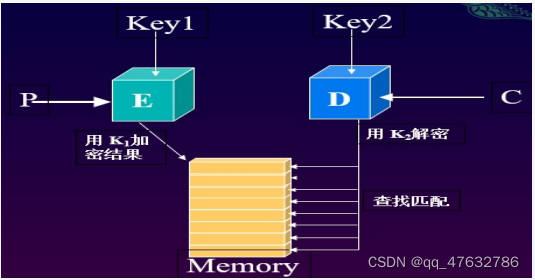 - DES不是一个群,所以二重加密不等价与用一个单一的密钥加密明文