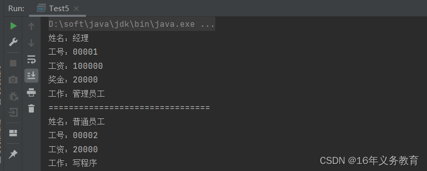 System.out.println("工作:管理员工"); //重写抽象类方法