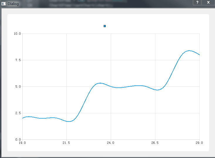 在构造函数中,对两个坐标轴进行实例化,把X轴范围设置为0-10并放置在坐标系的底部,Y轴范围设置为0-10并放置在坐标系的左边,并且添加到QChart中,如下: