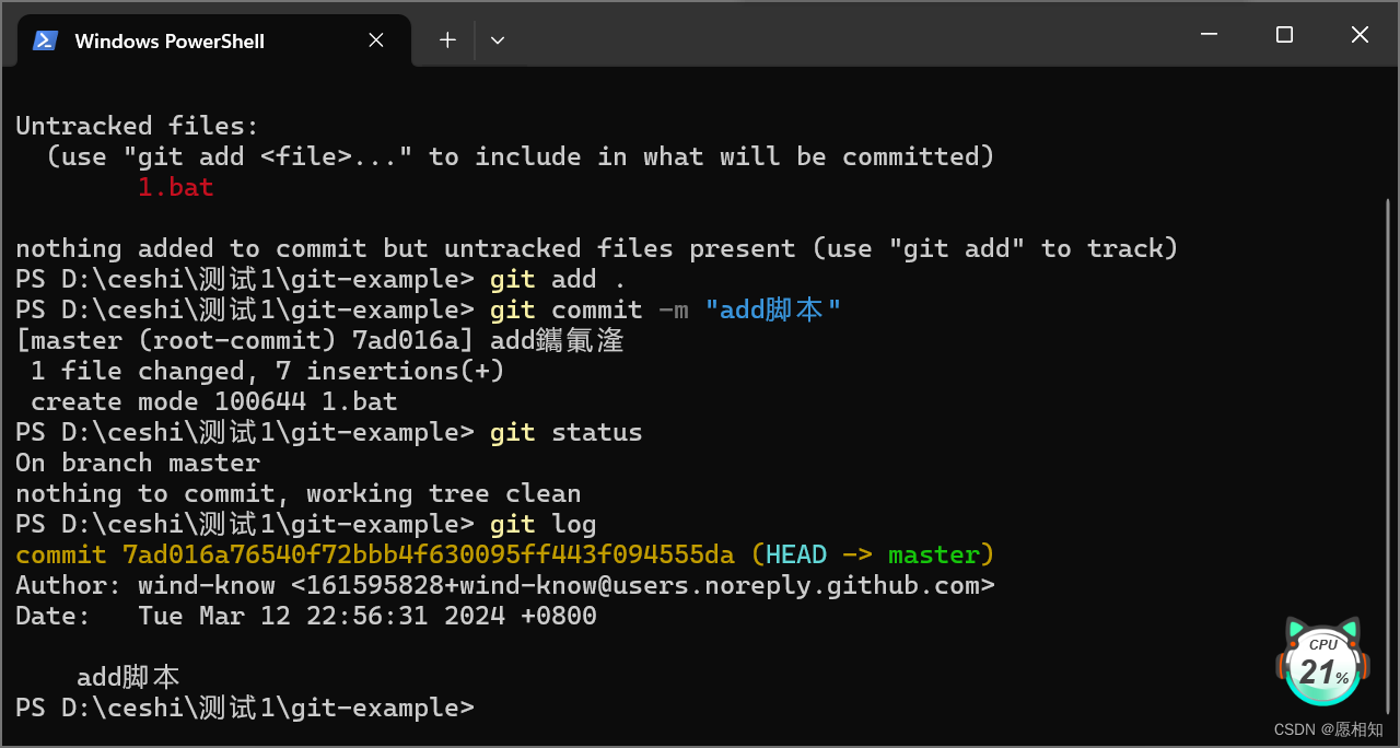然后在该文件夹打开终端,输入命令”**.\1.bat**“运行该脚本