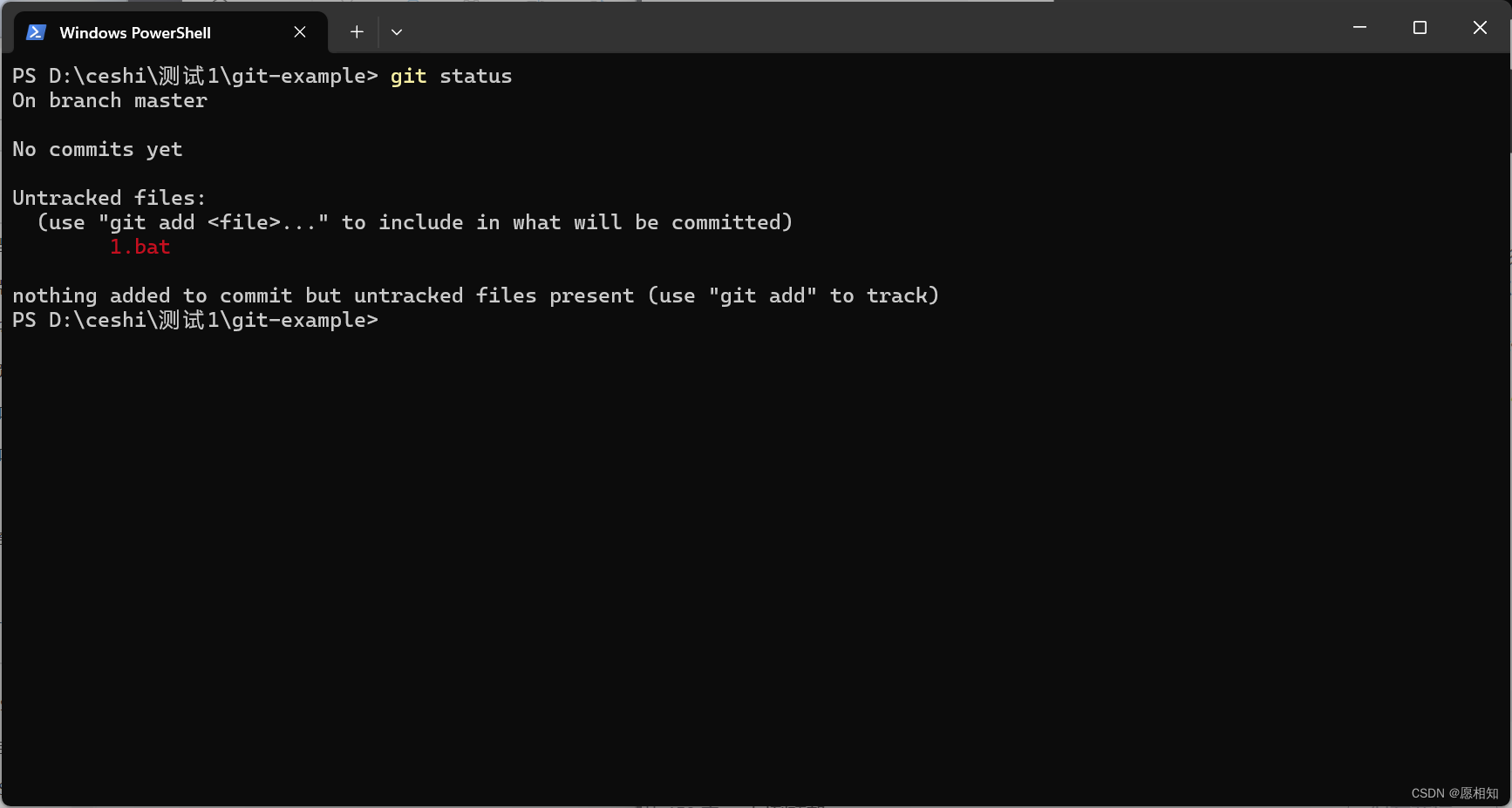 我们在1.bat之后创建一个新的2.txt,并使用status查看状态之后add一下