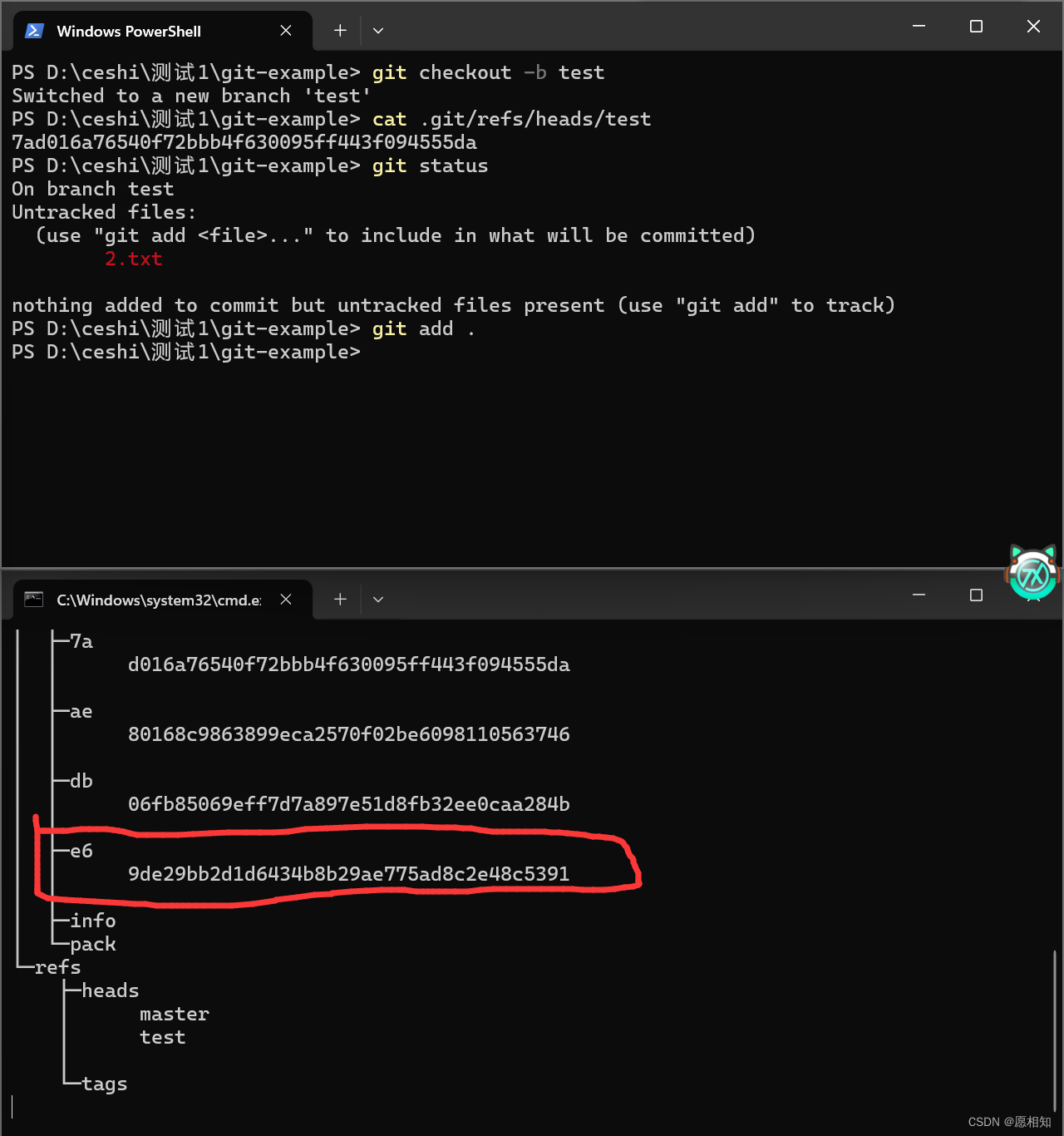 接下来,我们发现还有两个文件在这次进行的:add,commit两个操作中出现了三个文件,如果db对应我们的add,那么剩下两个文件分别对应什么呢