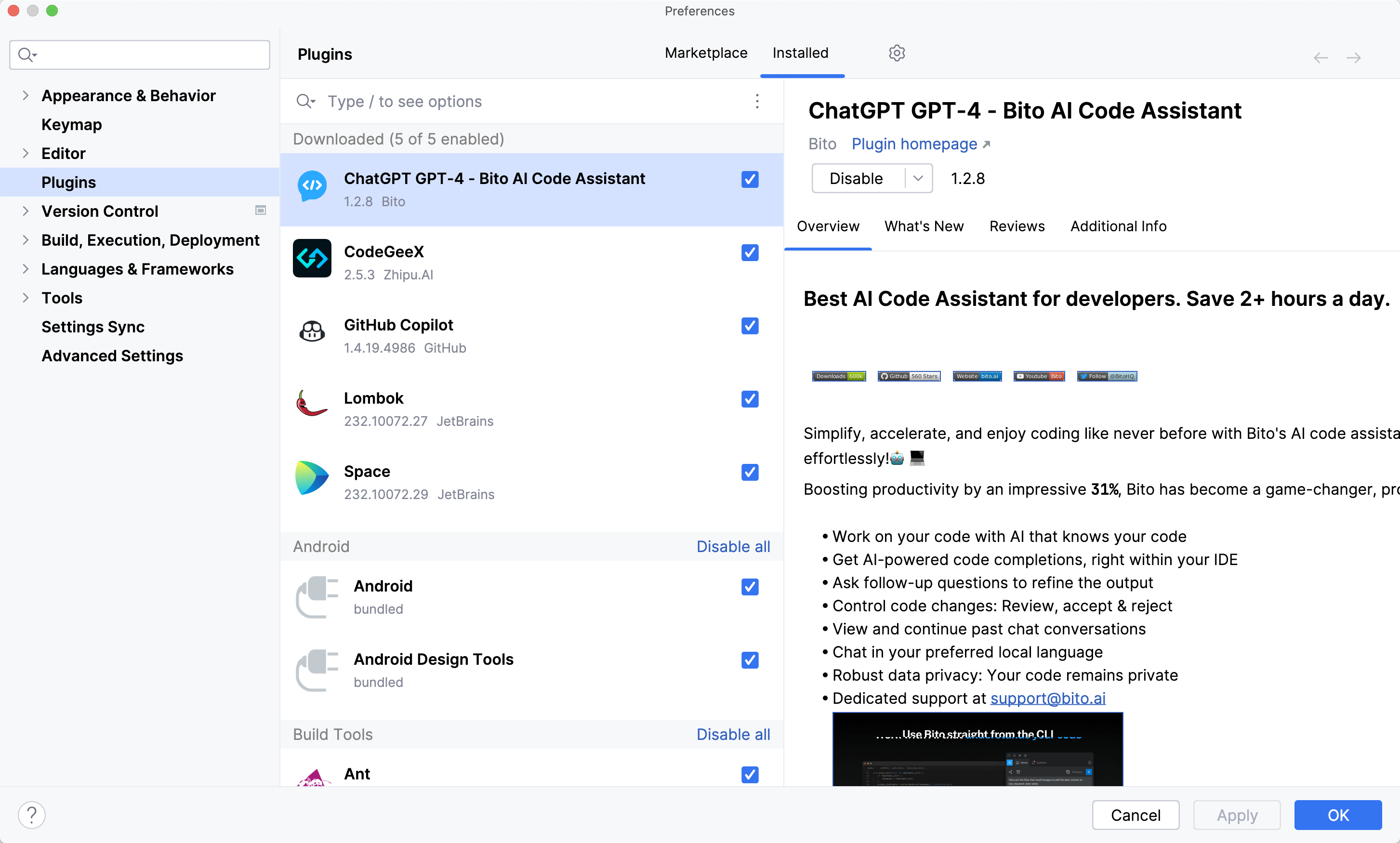 Bito AI code Assistant 是一个基于人工智能技术的代码助手,用于提供智能的代码补全、错误检查、建议等功能。它可能会分析您的代码,并根据上下文和语义为您提供更准确的代码建议,以提高您的编码效率和代码质量。