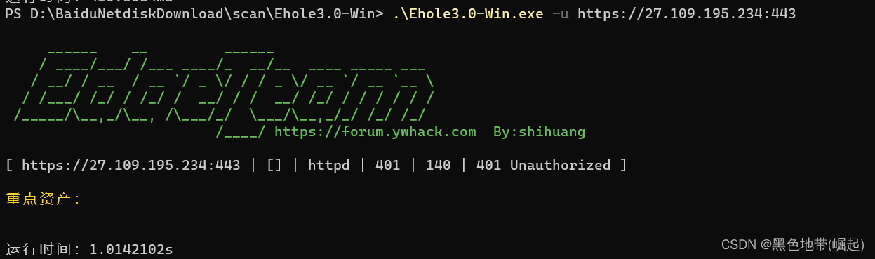 Releases · EdgeSecurityTeam/EHole (github.com)https://github.com/EdgeSecurityTeam/Ehole/releases下载对应的系统的版本