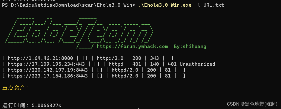 .\Ehole3.0-Win.exe -l URL.txt