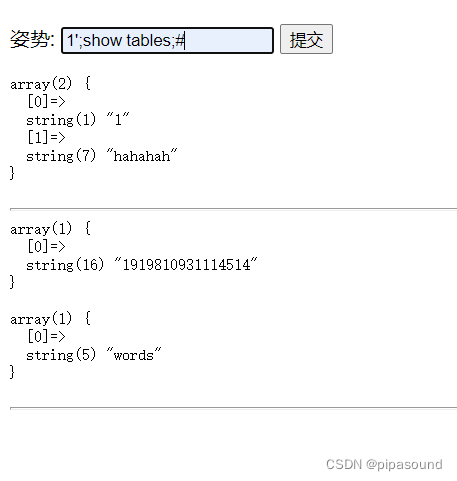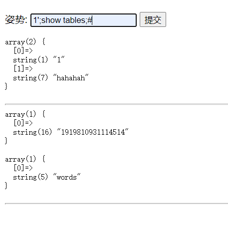 1';rename table `words` to `wordd`; //随便给words起个新名字