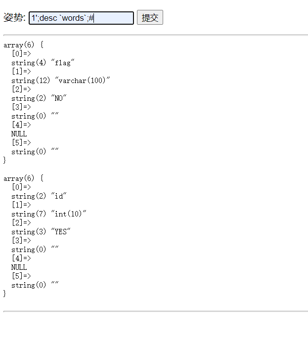 1';rename table `words` to `wordd`;rename table `1919810931114514` to`words`;alter table words add id int(10);alter table words change flag data varchar(20);#