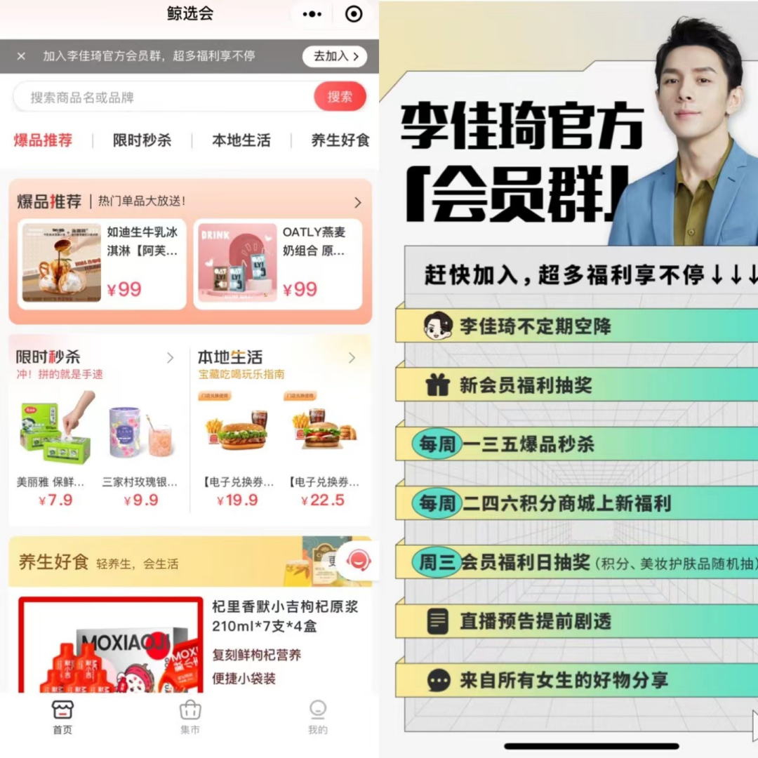与早期用主播用个人IP“李佳琦Austin”的命名方式不同,小程序选择了“鲸选”这样和个人关联度不高的名字来分散个人风险。