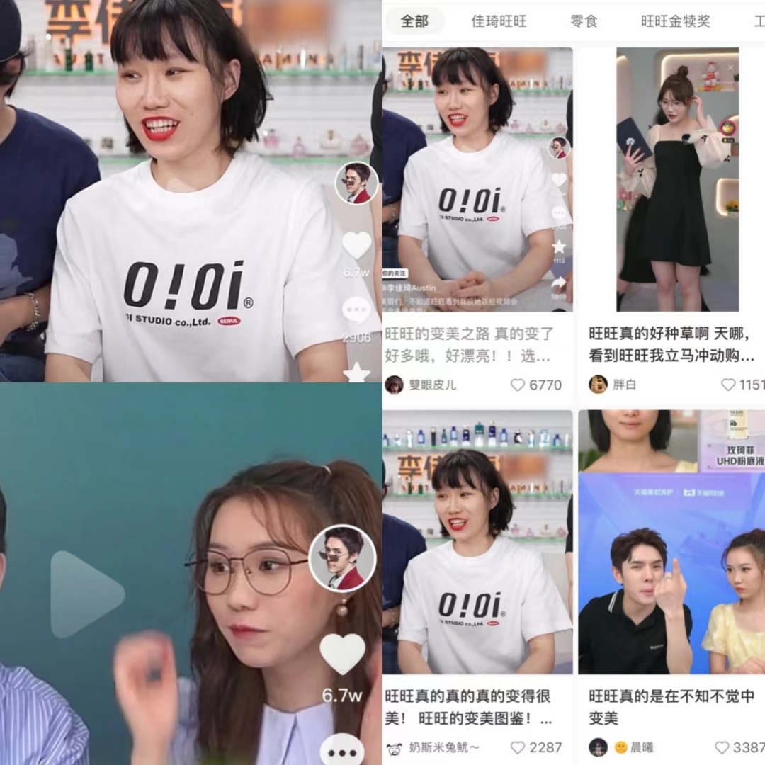 李佳琦的助播团出现的频率也越来越高,在一步步进行IP裂变。2020年小助理付鹏离开李佳琦后,助理变为旺旺,以前的旺旺上直播,声色慌乱,放不开,被网友吐槽打扮平常,颜值普通。而现在她气质提升,能控场,会抛梗接梗,这样的转变吸引了一大批女性死忠粉。在小红书,还有网友整理了旺旺的变美之路。