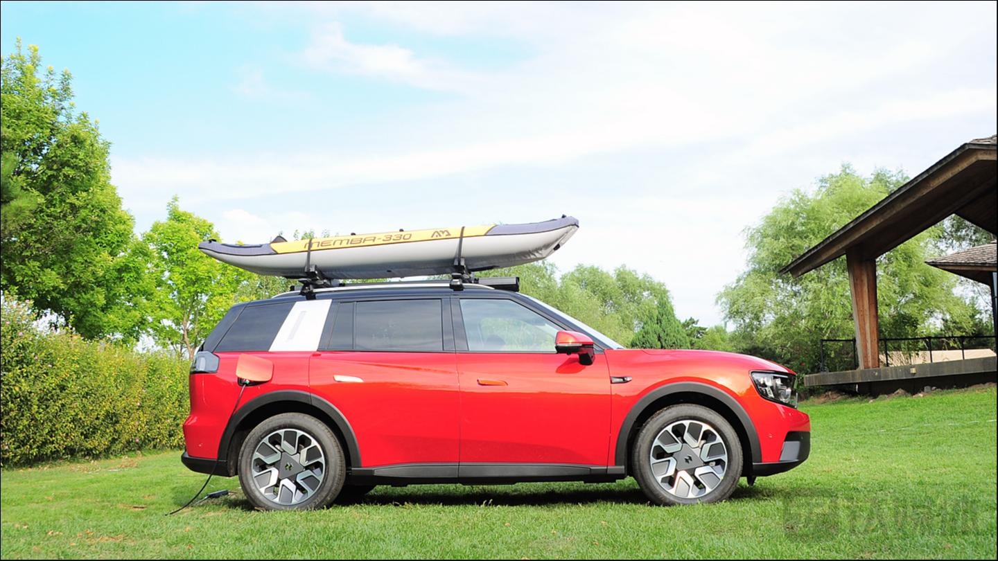 这是一款基于城市探索风格打造的中大型5座SUV,简单的说尺寸方面对标理想ONE,但是在风格上兼顾家庭用车的同时,更加注重户外体验,拥有不错的通过能力,良好的户外可延展性。自游家NV在造型上也显得没那么“随大流儿”。宽体车身、悬浮车顶,造型硬朗,用复古风的外形、美式硬派肌肉感的越野风格,再加上都市的时尚元素,刻画出了浓浓的户外探索气质。与其它所有重装SUV所不同的是,自游家NV在日常通勤和远行探索之间,可以随时无缝切换。