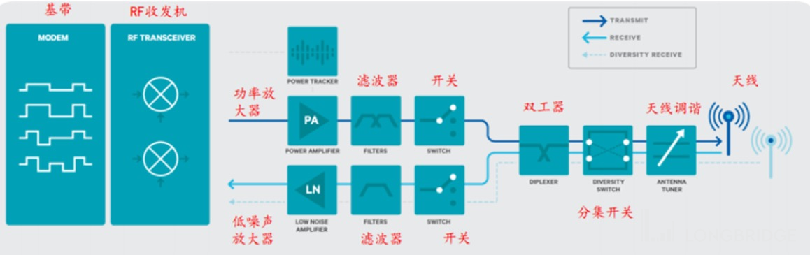 ①基带芯片:用来合成即将发射的基带信号,或对接收到的基带信号进行解码的芯片,主要起到通信终端的信号处理功能。而苹果目前仍在采购高通的基带芯片,用于自己的 SoC 芯片上;