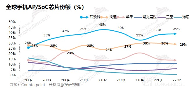 1)基本盘稳固:主要来自于手机芯片方面的绝对领先的设计能力。即使在下滑的大背景下,公司仍实现了份额端的提升,进一步巩固了高端安卓芯片市场的领先地位;