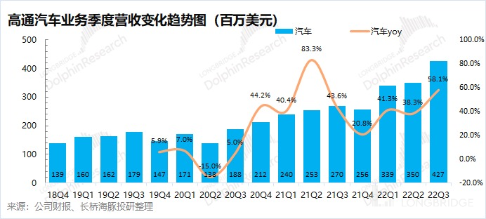 汽车业务,主要包括远程信息处理器件、连接和信息娱乐系统器件产品。随着新能源车的普及,高通的汽车业务也迎来的持续高增长的表现。