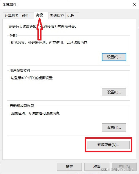 步骤3:打开【系统属性】对话框,选择【高级】选项卡,然 后单击【环境变量】按钮