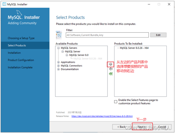 mysql-installer-web-community-8.0.26.0.msi 下载程序大小:2.4M;安装时需要联网安装