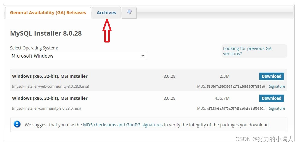 步骤1: MySQL下载完成后,找到下载文件(.msi),双击进行安装后