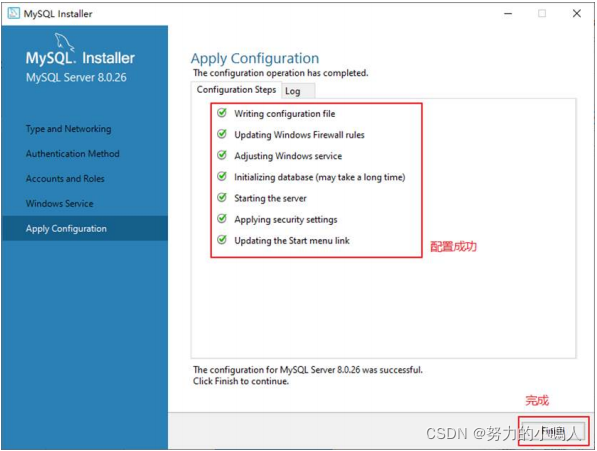 步骤7:完成配置即完成了服务器的配置,单击 Finish