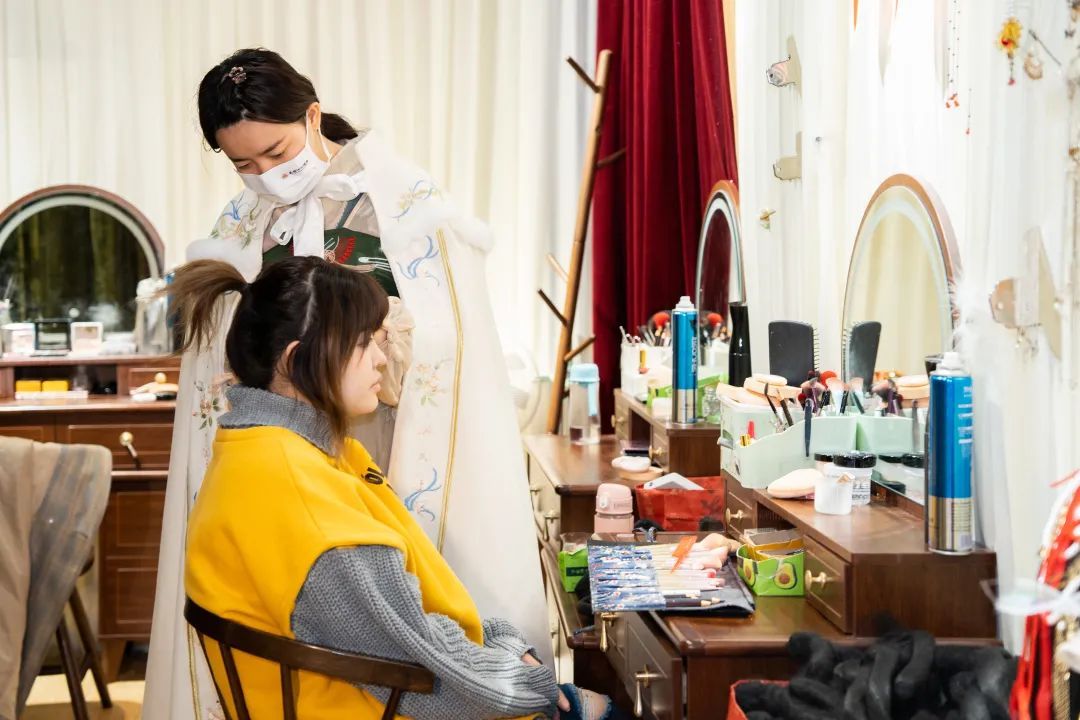 其次,将妆造流程标准化,并重视妆容研发。“《梦华录》火的时候,我们有刘亦菲1:1还原款,《苍兰诀》火了,我们有小兰花造型。”紧跟潮流是陈晨的秘诀。类似于海马体和天真蓝,这家小店也是先由主管研发妆容,再统一培训化妆师,“很多约拍店会请兼职化妆,每天来的人都不一样,妆造质量也参差不齐。而我们的这种模式,能保证质量与体验。”