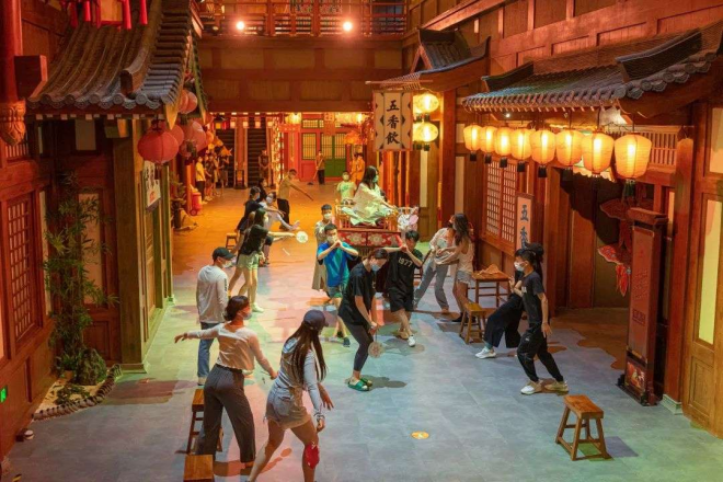据介绍,这个长安十二时辰主题街区的沉浸式剧本杀《大唐永不眠》故事背景,发生在上元二年,太上皇李隆基举办万寿节,天下人都可以凭长安户籍,进入传说中的神秘的隐市坊。但同时,长安城内危机四伏,玩家需要探索坊中隐藏的秘密。