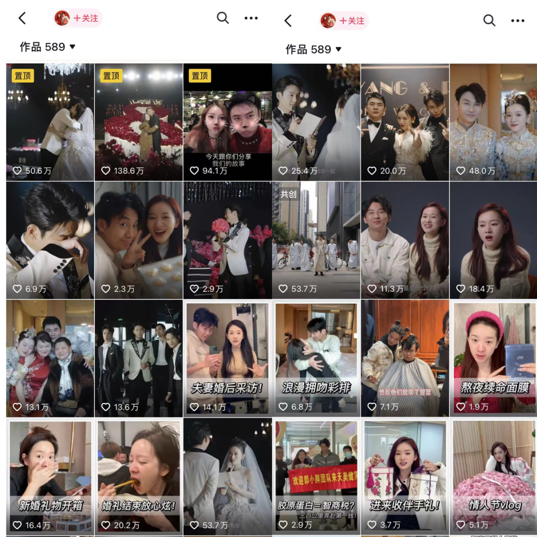 用她的话说,结婚是网红们性价比最高的创作方式——周期长、选题多、变现快,还容易出爆款。