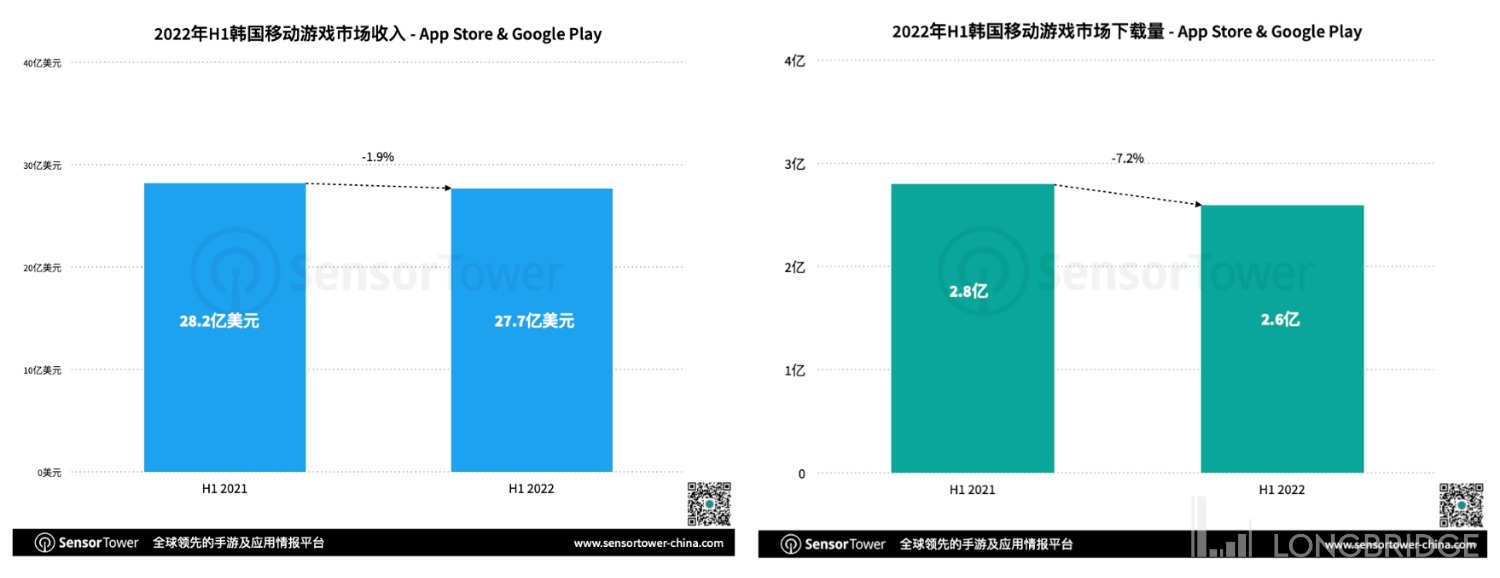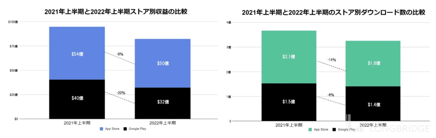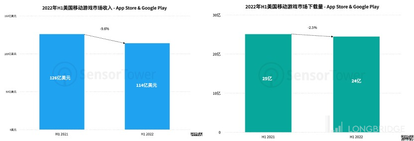 (1)美国手游市场,上半年玩家支出同比下滑 9.6%,下载次数同比下滑 2.5%。其中收入相对较低的 Google Play 用户,在通胀环境下受到的生活成本压力更大,因此显著减少了游戏上的花费。
