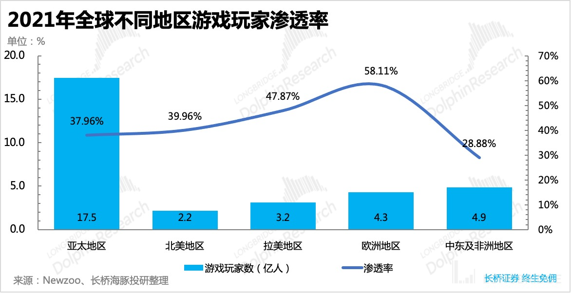 如果要看游戏行业未来的增量,无非就是从玩家数量的渗透和玩家付费力的提升两个角度: