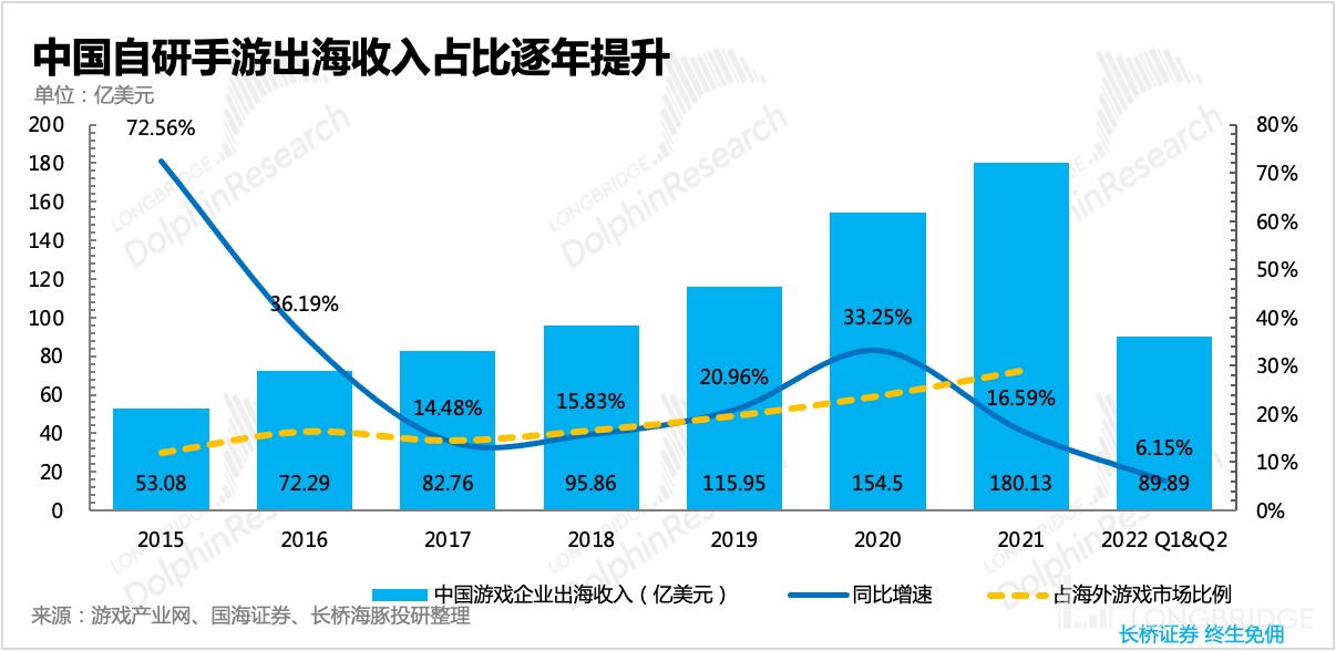 在整个大中华文化出海中,游戏算作是一个顶梁柱,国内游戏厂商们凭借自己相对领先的手游研发能力,自研产品近几年在海外市场上的影响力也越来越大。
