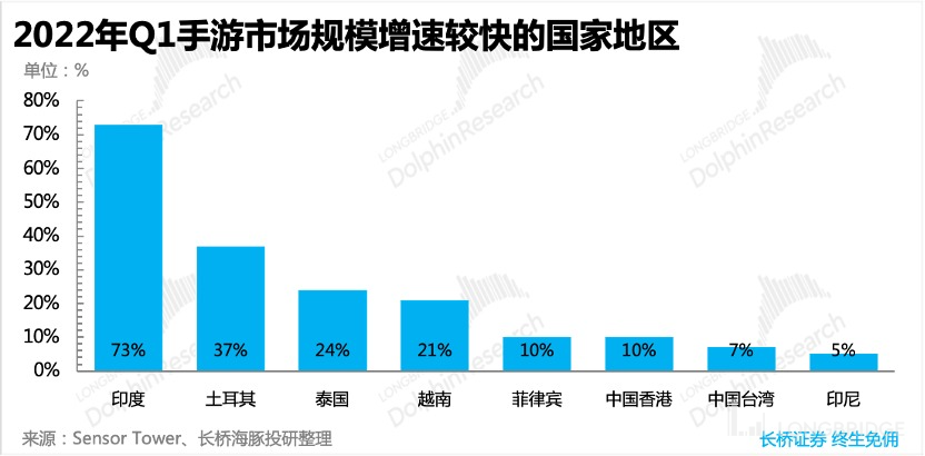 除此之外,香港、台湾等地区,今年上半年也在增长。海豚君认为,这恐怕与大陆版号停发期间,游戏厂商扎堆出海后,首站选择港澳台地区使得当地上线新品密集有关。