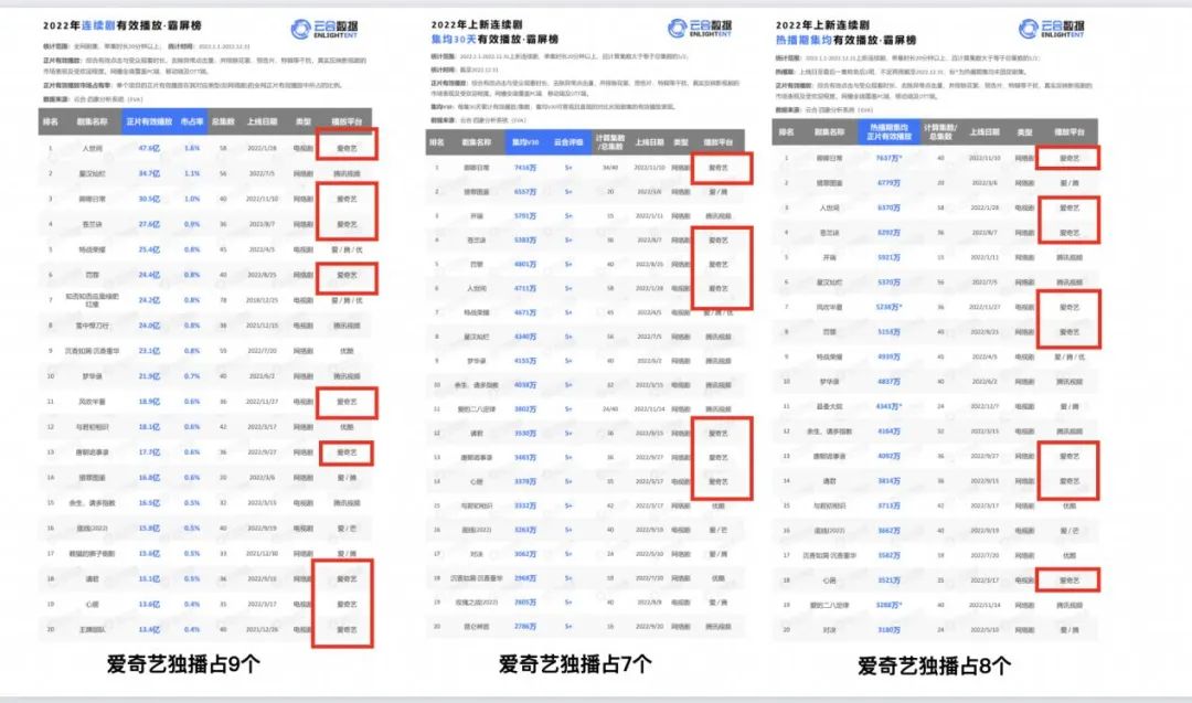 这里面会出现相关优秀的生产要素,如编剧、演员、导演等,会倾向于更有经验的爱奇艺,而非选择芒果、腾讯视频合作。
