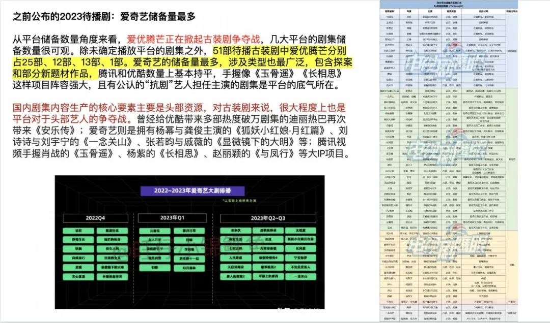同时翻看了23年,流媒体市场的剧集pipeline情况,以古装剧为例(咱们不谈悬案迷雾这系列)