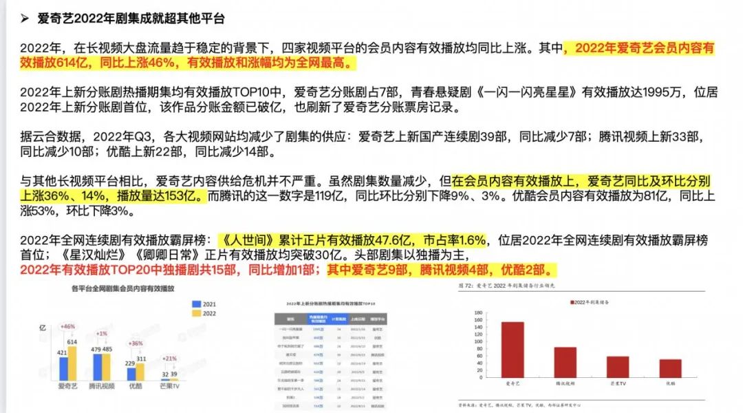 换句话说,爱奇艺的剧集储备,明显就比别家多,明年业绩相对其他家来说,应该会更好一些,而且概率更高。
