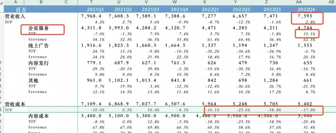 一句话,凭什么在内容成本这季度降低17%,全年同比降低19%的情况下,会员订阅数、MAU、Rev、ARM全都“蹭蹭蹭”上涨。
