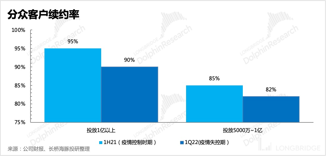 从管理层透露的数据来看,投放预算越高的中大型品牌广告主,在分众上的续约率也更高,是能够证明分众对大客户的捆绑效应的。