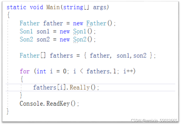 声明一个父类数组 并创建三个类的对象添加到数组中