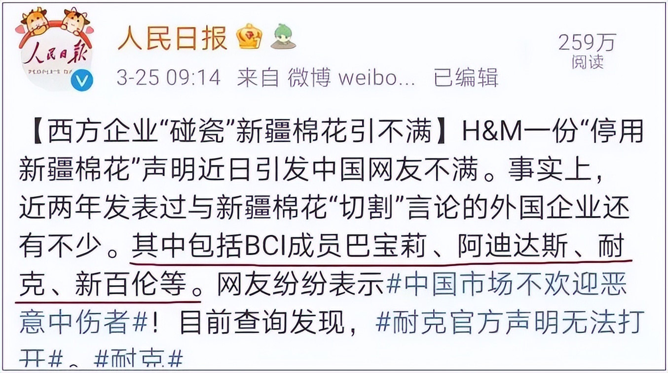 “吃着国人的饭却砸了国人的碗”,才是这些洋品牌在中国沦陷的直接原因。2020年12月,美国以子虚乌有的“强迫劳动问题”打压新疆棉花。2021年3月,跳出来抵制新疆棉花的H&M集团,很快引发众怒,第二季度其中国内地销售额同比下降28%。