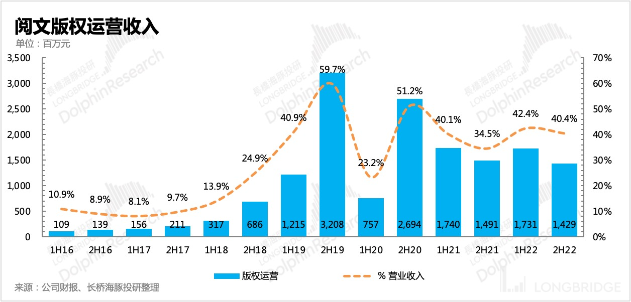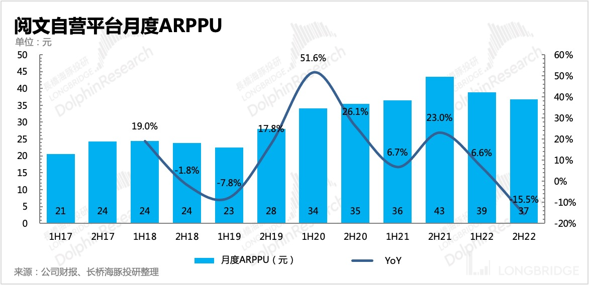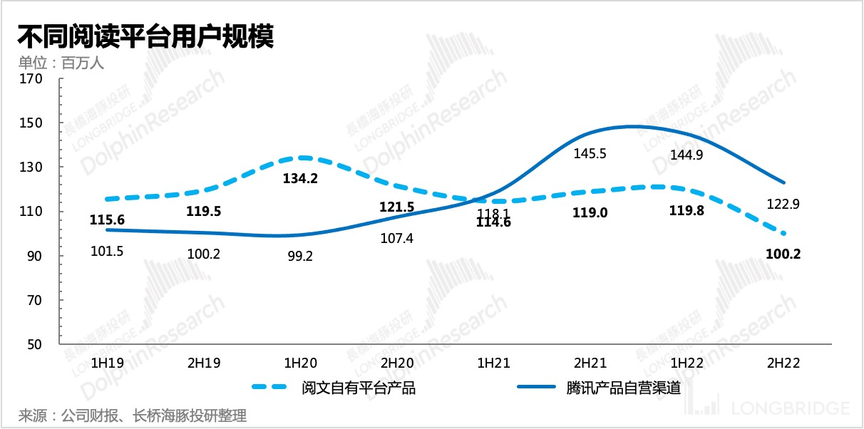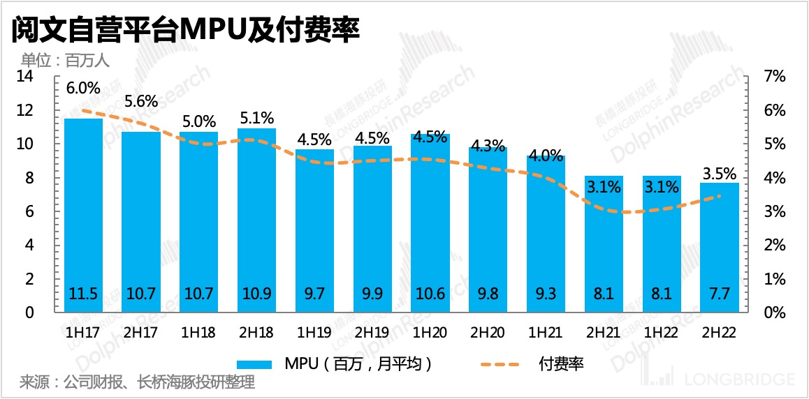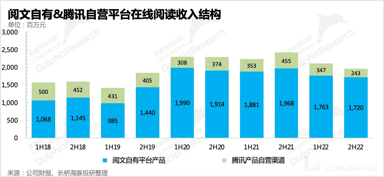 下半年阅文自营平台的月活人数有所下滑,公司解释为降本增效策略下,减少了获客投放。腾讯系渠道(微信阅读、腾讯视频等)的在线阅读用户下半年也有了一定流失,但全年维度来看基本保持稳定。