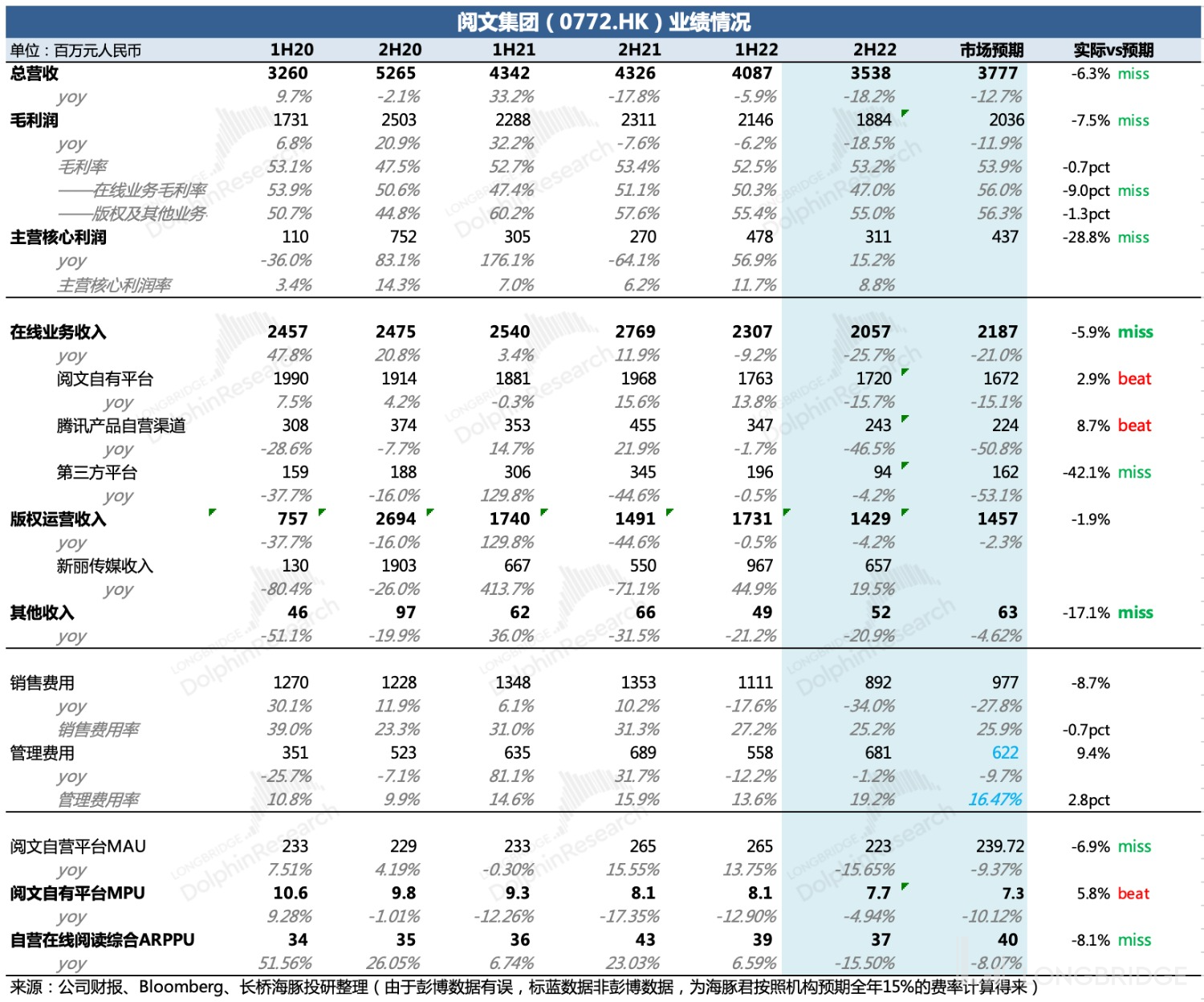 不同于海豚君在对 2021 年报点评时的展望(不确定性高、需要做过冬准备),我们对阅文的 2023 年恢复预期上会积极大于风险。同时也建议关注此次业绩电话会上,管理层对展望的更多描述。