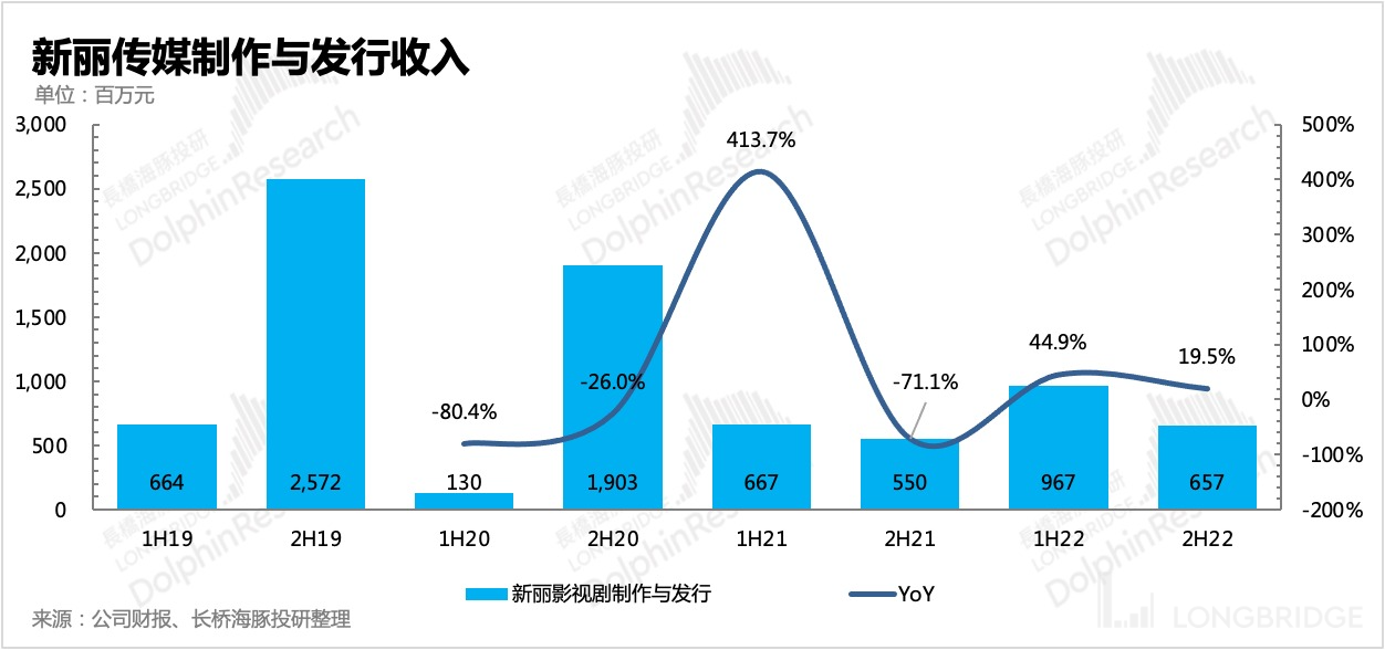 由于疫情对影视制作带来不小的扰动,排期上全年 7 部电视剧作品有 5 部集中在上半年播出,并且全年两部电影也都在上半年上映,因此新丽下半年的收入并未像往年一年远高于上半年(一般重点影视作品会放在暑假期间播出)。