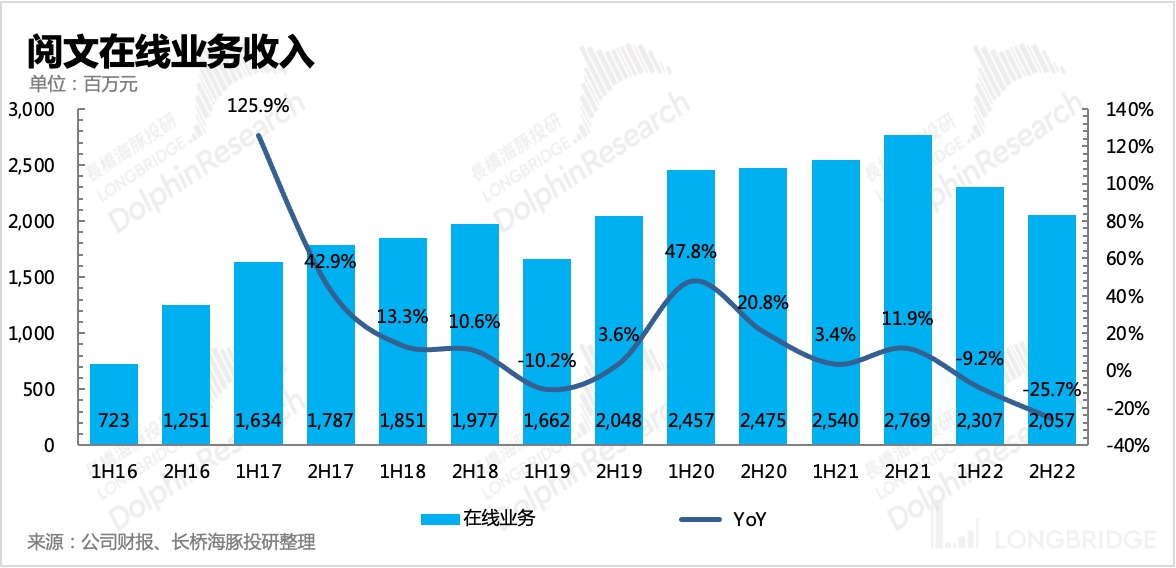 三、阅读承压加上游戏受版号影响,共同拖累在线业务