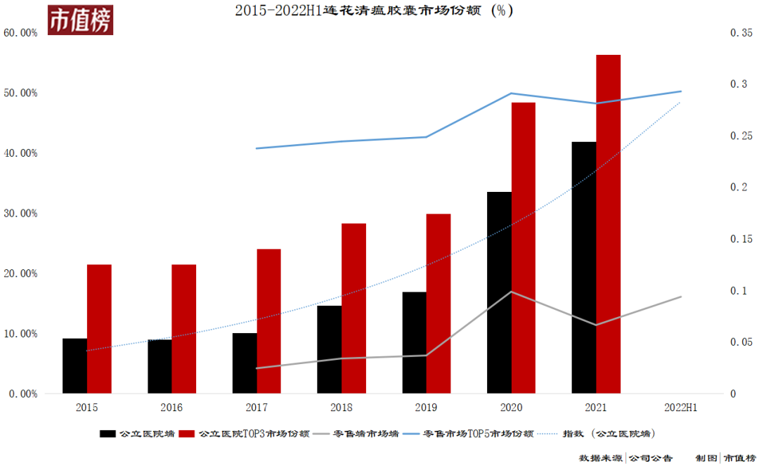 销售方面又细分为公立医院端及零售端。在公立医疗端,连花清瘟市场份额从2015年的9.2%增长至2021年的41.8%;零售端市场份额从2017年的2.44%增长至今年上半年的9.37%。