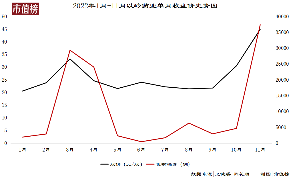 伴随着疫情防控的松动,在囤药热情以及“未来感染人数上升打开药品需求量增量”的双重刺激之下,以岭药业股价最高达到了53.96元。