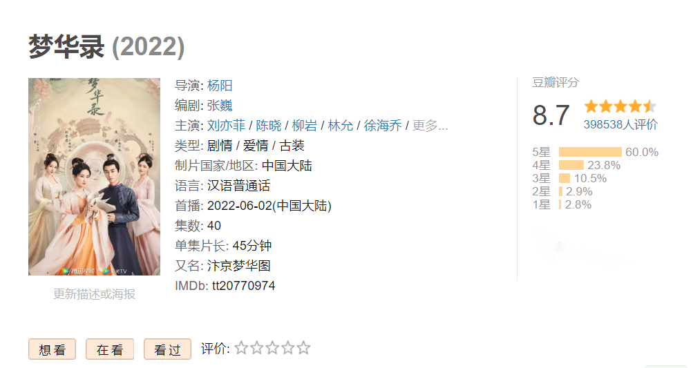 一路水涨船高的《梦华录》迎来了降分。