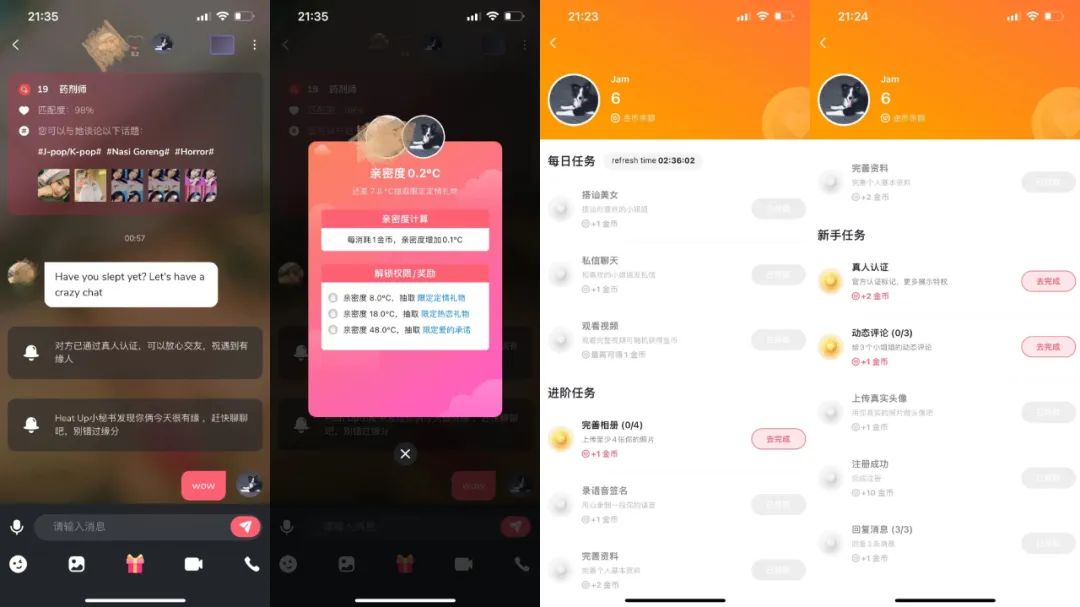 Heat Up 有意思的地方在于将严肃交友常用的模式与裸露的付费陪聊相结合,企图用真实降低用户的防御性。
