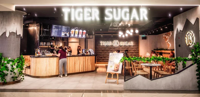 奶茶2.0时代的海外标杆选手老虎堂虽然姗姗来迟,但也不肯错过这片淘金热土。2021年老虎堂TIGER SUGAR入驻迪拜Deira city centre,店铺选在地铁与商场的交汇处,人流量大,地理位置优势明显。
