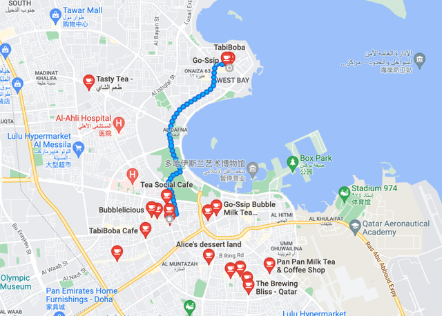 (多哈奶茶门店分布,图源@谷歌地图)
