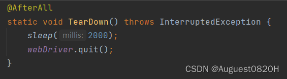 4.关闭驱动,退出浏览器。添加@AfterAll 注解,确保驱动的关闭是在所有测试代码结束之后执行。
