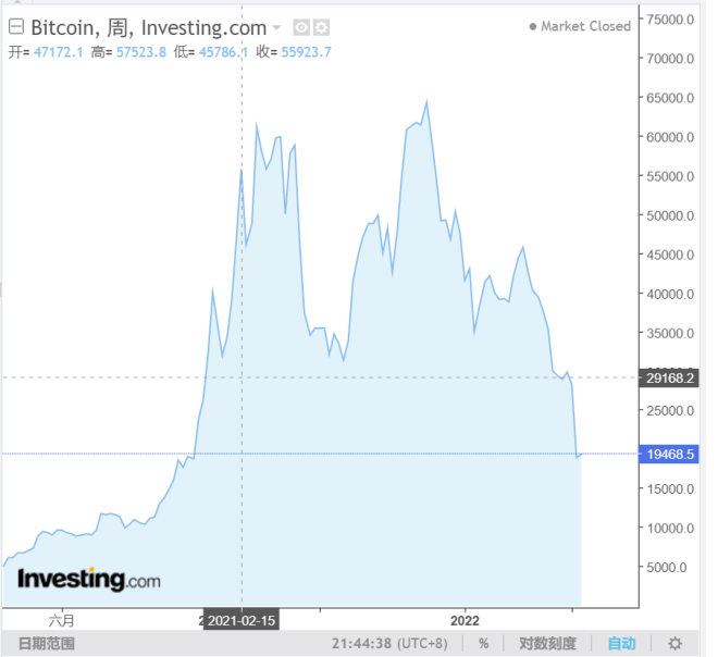 事实上,从去年年底开始,以比特币为代表的加密货币就已经结束过去数年高速增长转而开始掉头向下。而在刚刚过去的周末,加密货币更是出现了惨烈的集体暴跌。