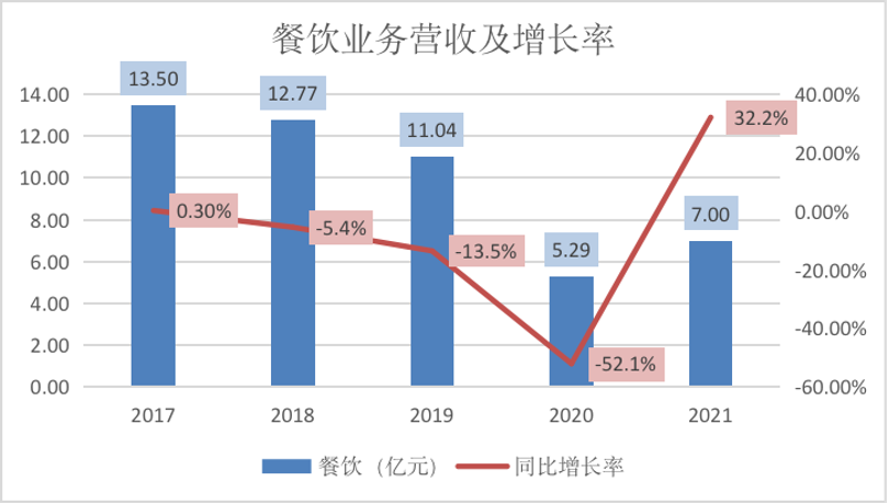 其次,从餐饮行业收入情况来看,受疫情影响,2020年中国餐饮收入规模为39527亿元,较2019年下降15.4%;2021年,全国餐饮收入46895亿元,同比回升18.64%。2021年全聚德餐饮业务收入较2020年也有明显回升,增长率达到32.2%,甚至超过了行业收入增速。不过这是由于基数效应导致,2020年其餐饮业务营收下降52.1%,远超全国餐饮行业收入下降幅度。并且全聚德虽然2021年收入有所改善,但依然与疫情前有很大差距。