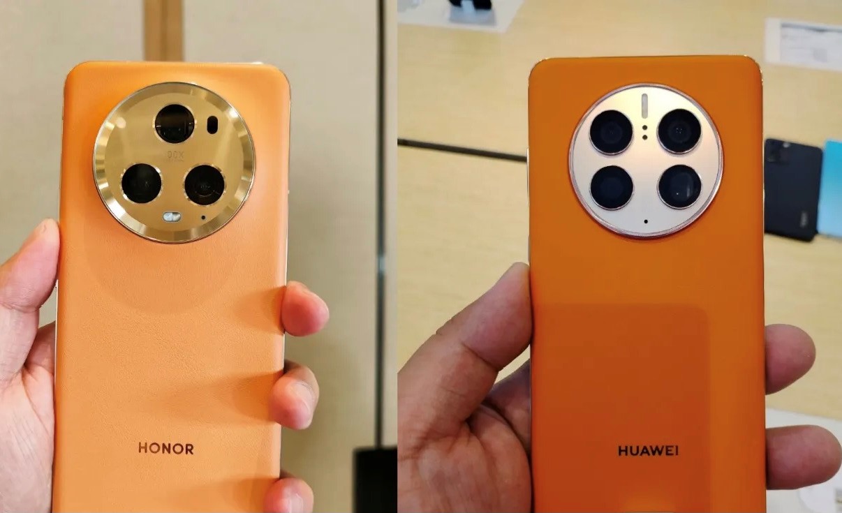 比如华为Mate50的昆仑霞光和Magic5的燃橙色,不能说一模一样,但也称得上完美“撞色”了。